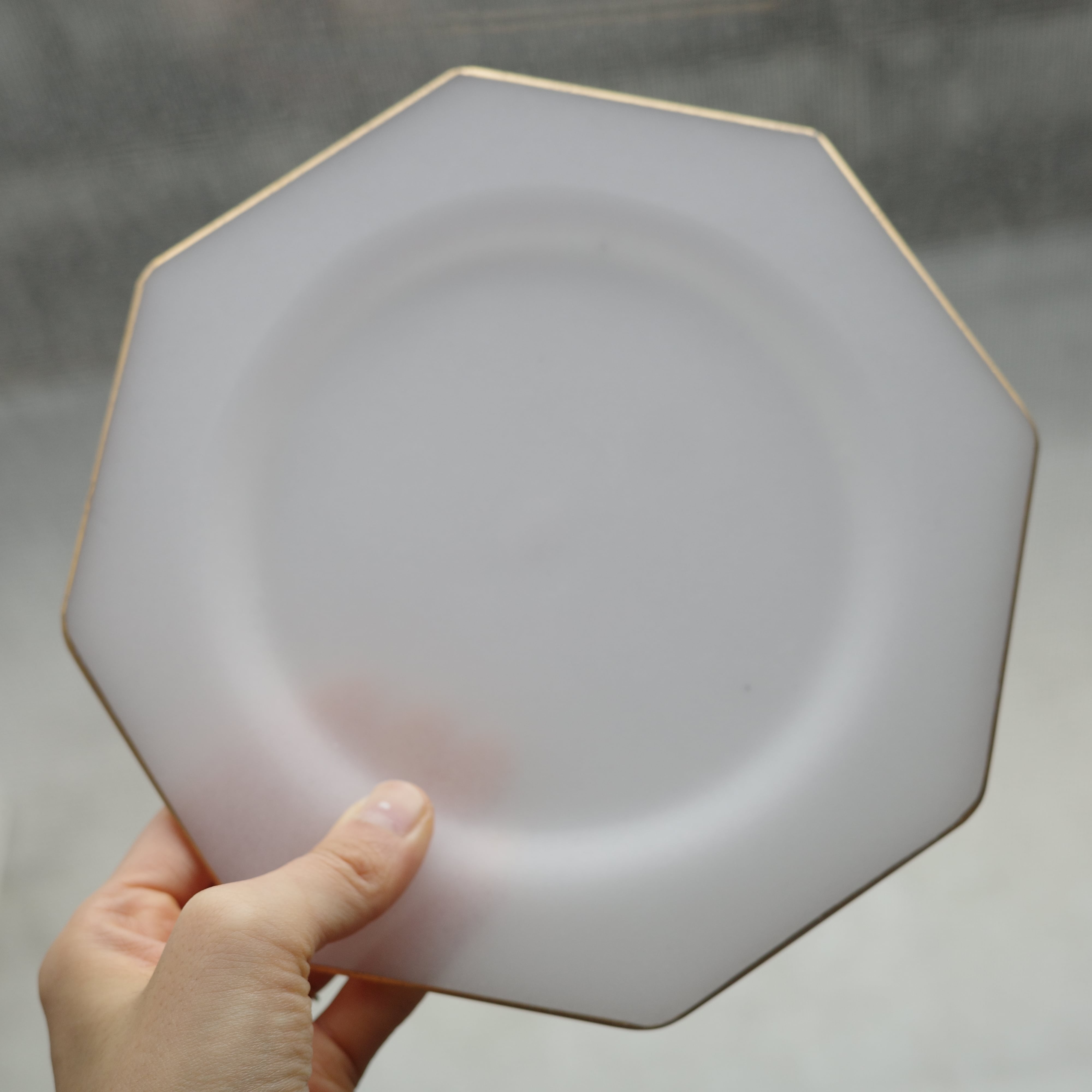 金彩と八角がエッジの効いた、絵になるガラス皿。