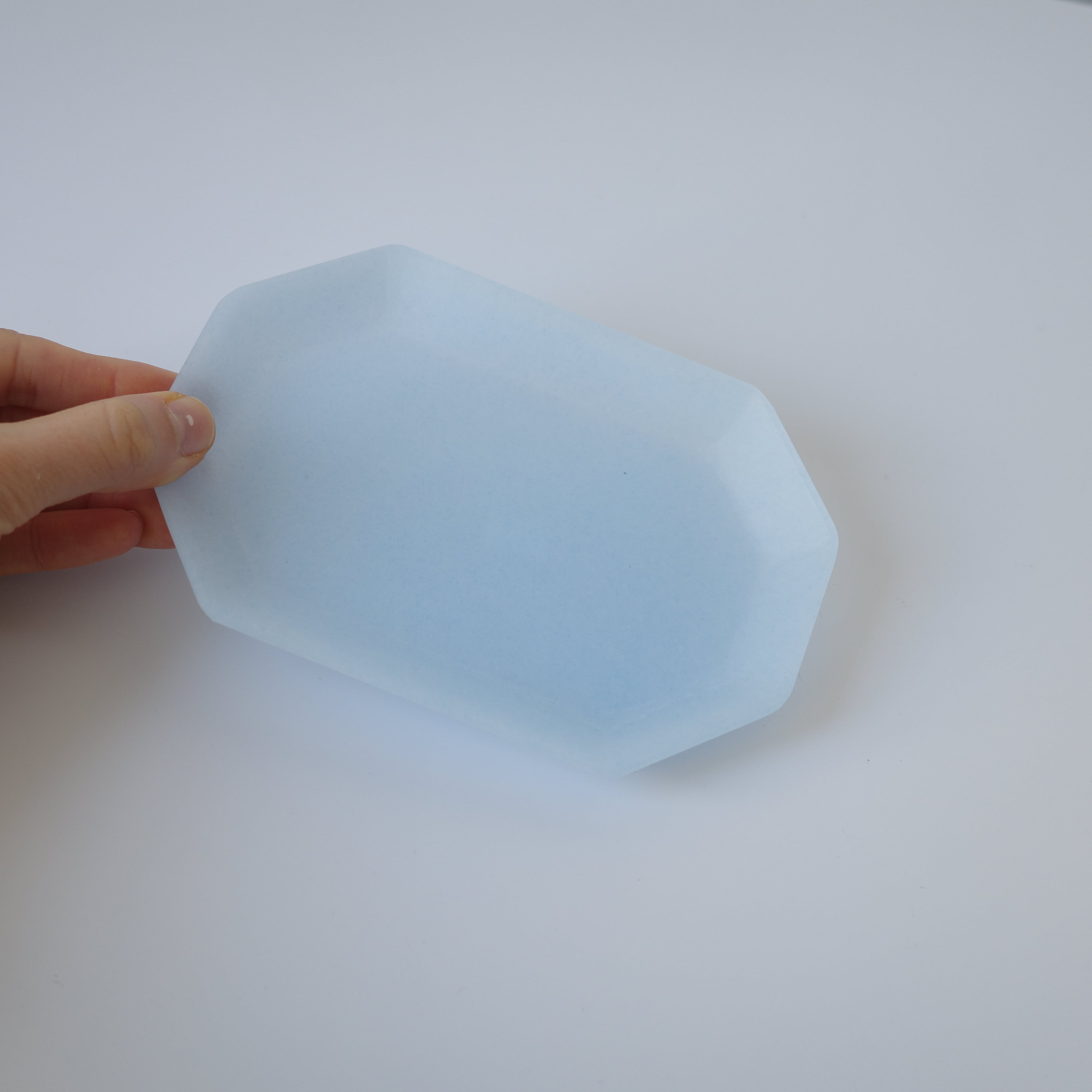 やわらかく切り取られた角と、すべすべの面に思わず触れていたくなるお皿。